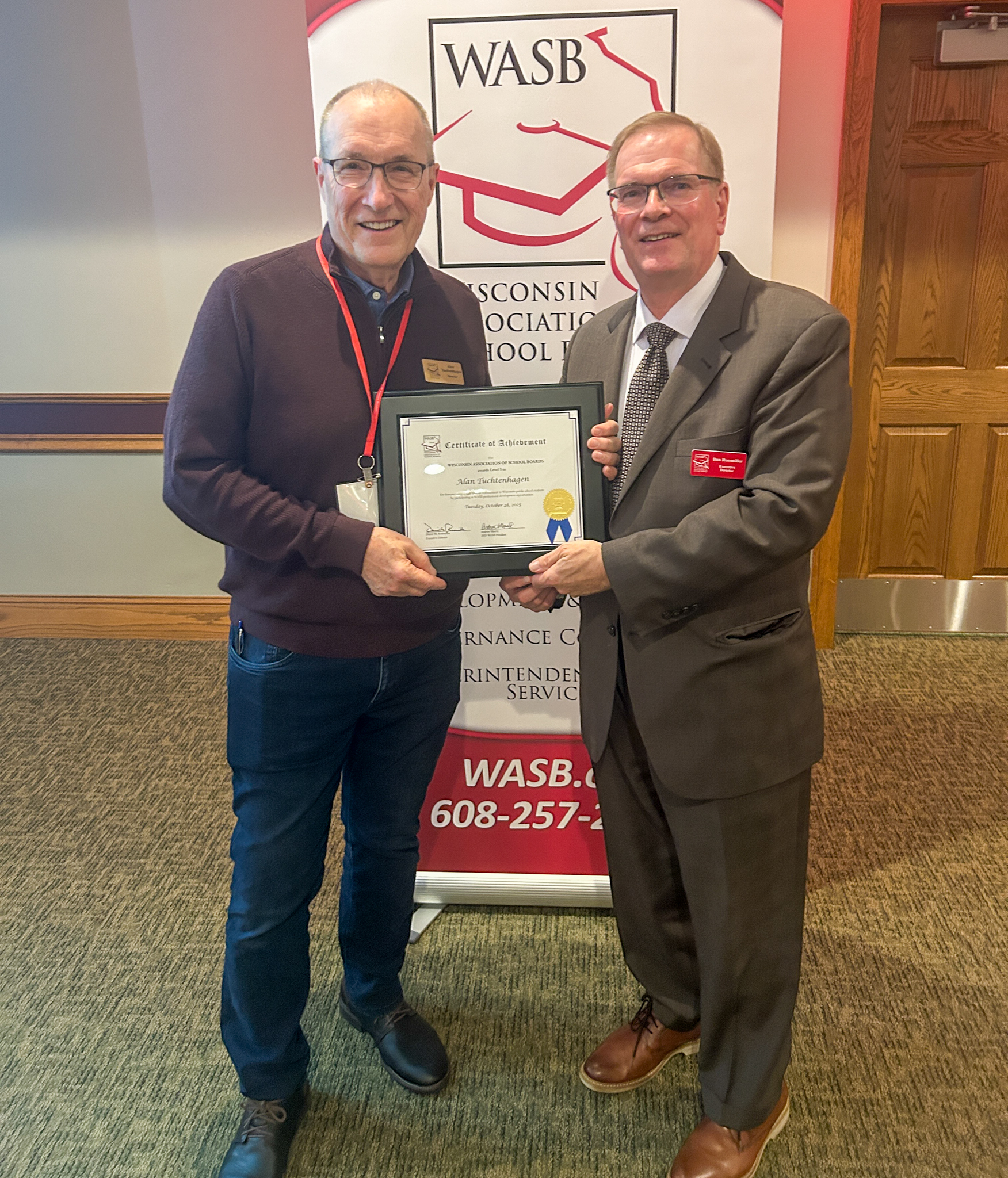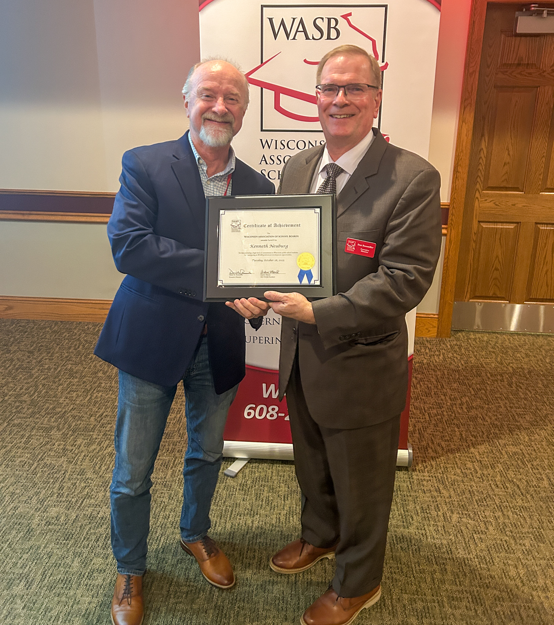 On Oct. 28, 2025, WASB Executive Director Dan Rossmiller presented Member Recognition certificates to board members during the Region 4 Fall Regional Meeting in Eau Claire.